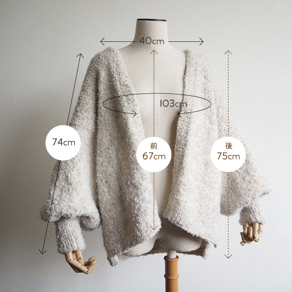 <トルソー着用>着丈:前67cm・後75cm、肩幅:40cm、袖丈:74cm、胸囲:約一周103cm