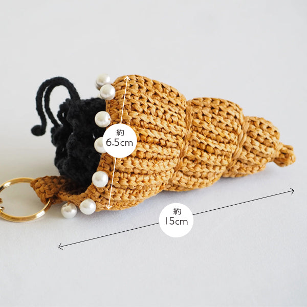 すじ編みの往復編みで編む巻貝チャームです
