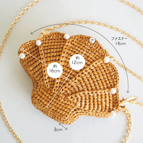スカラップ:高さ=約12cm(チャーム含まず)、横幅=16㎝、ファスナー開口部=16cm、マチ=3cm